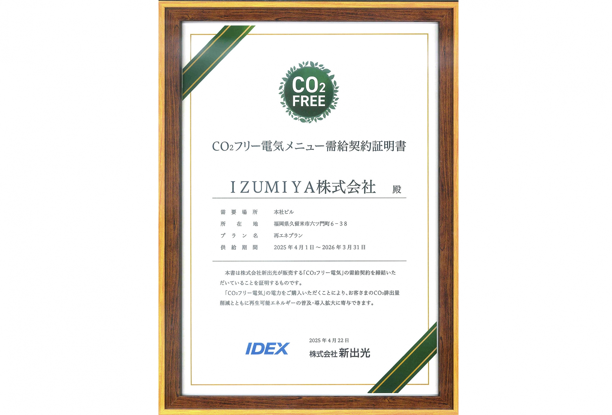 IZUMIYAはCO2排出量の削減とともに、再生可能エネルギーの普及・拡大に寄与しています。